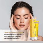 Pon el producto en el área de los ojos dando pequeñas palmaditas y masajeando suavemente hasta que se absorba.